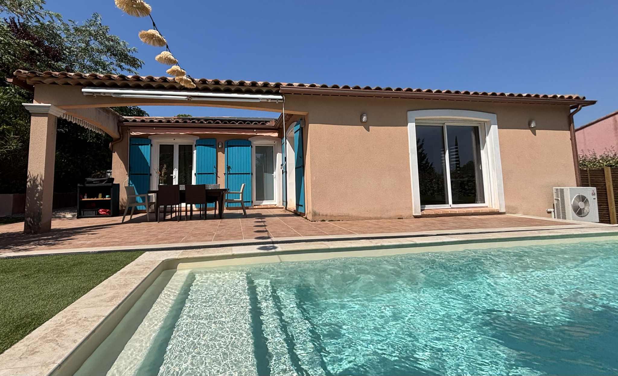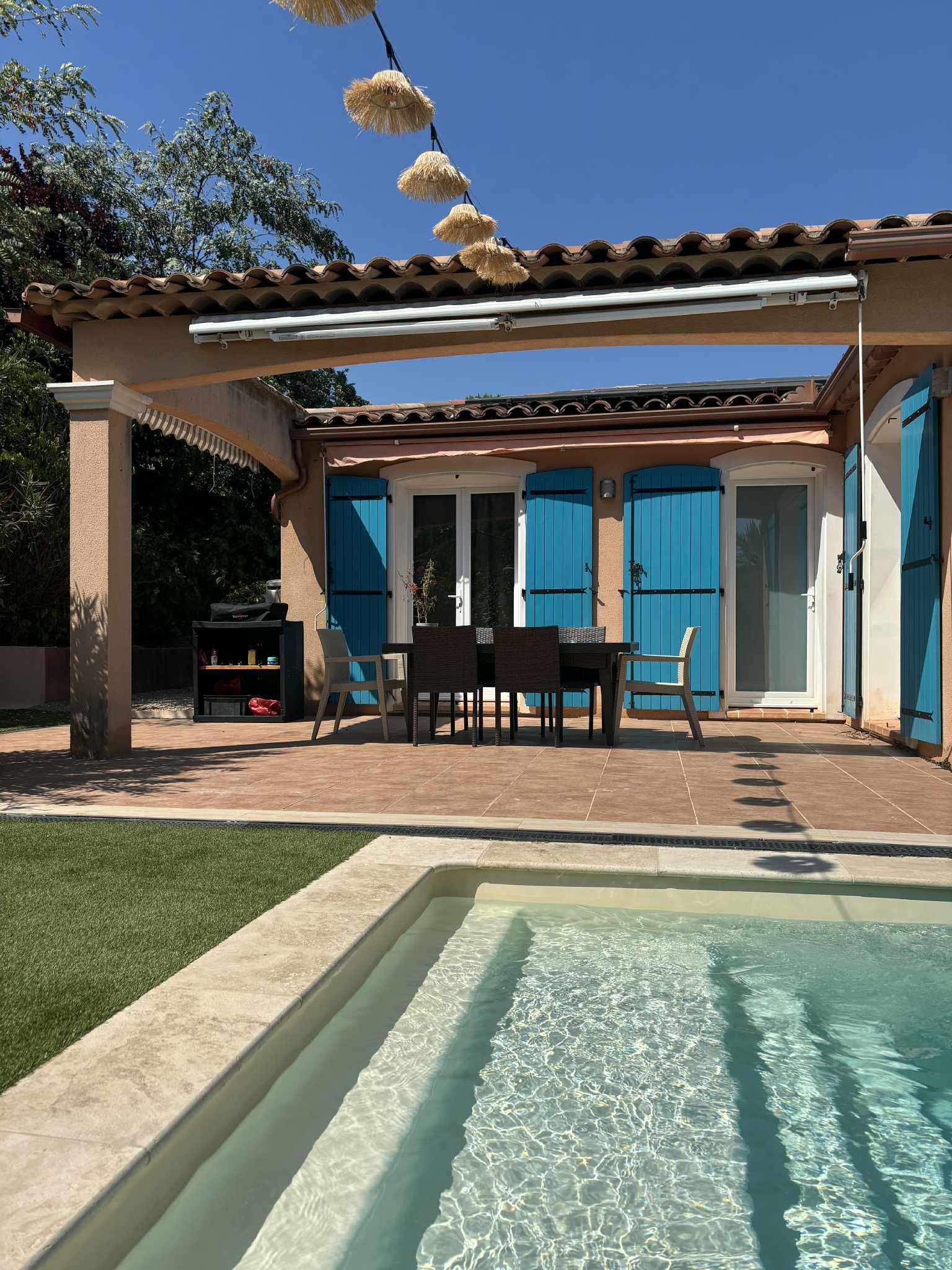 Villa spacieuse rénovée moderne de 120m² de plein pied dans une résidence privée de 8 villas au calme, terrain clos, elle est composée de 3 chambres, 2 chambres doubles dont 1 suite parentale avec un salle d'eau et toilette et 1 chambre avec 2 lits simples. Elle dispose d'un vaste salon, salle à manger, TV, avec cuisine ouverte toute équipée, plaque induction avec hotte intégrée, lave vaisselle, four, four micro-ondes, cafetière ..., local avec machine à laver, terrasse et jardin attenant avec son jacuzzi privatif et piscine chauffée de saison d'avril à fin octobre selon la météo. Climatisation et connexion Wifi.Linge de maison fourni (draps, serviettes).